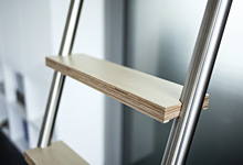 Die Edelstahl Anstellleiter lässt sich ganz einfach an ein Regal oder die Wand anlegen und passt sich somit problemlos durch ihre große Auflagefläche an. Durch den Anlagewinkel und die Edelstahl-Stellfüße sorgt die Leiter für einen festen Stand. In Kombination mit Edelstahlrundspossen oder auch Holzstufen passt sich diese Leiter perfekt jeder Raumsituation an.